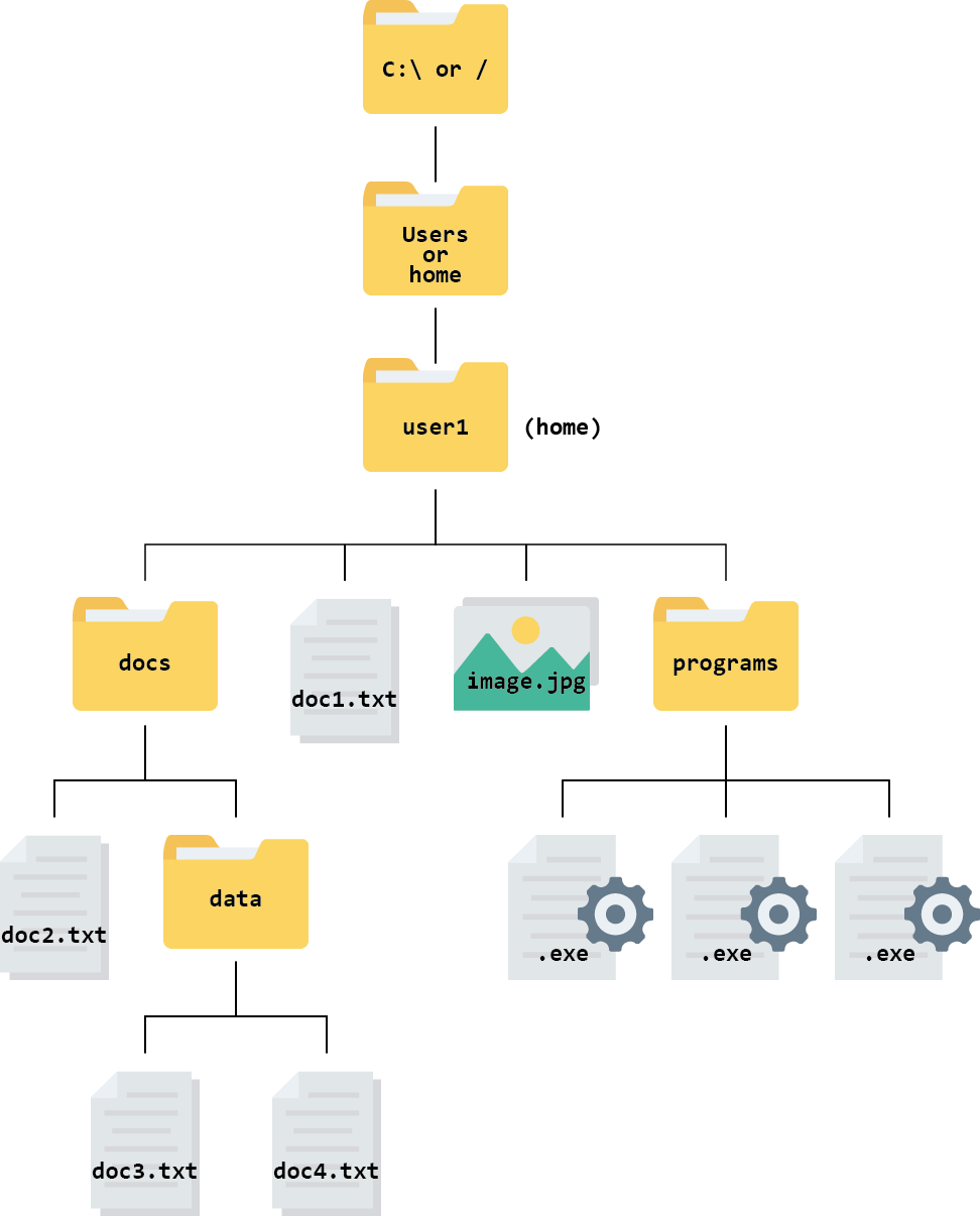 For example, the path for the file called doc3.txt in the file system above looks like this: user1/docs/data/doc3.txt in a Unix or Linux computer.